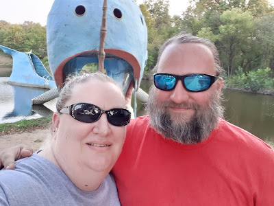 Back on the current Route 66, we kept our eyes peeled for the Route 66 Nuthouse, but we weren't totally successful. We found what we thought was the Nuthouse, but the entrance had gates that were closed (the Nuthouse looked to share land space with an RV park), so no luck there. We continued on to our next tourist stop, the Blue Catoosa Whale.